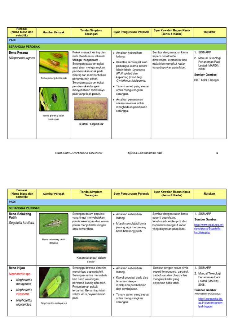 Now customize the name of a clipboard to store your clips. Kadar Rujukan PADI SERANGGA PEROSAK Bena Perang Pokok menjadi kuning dan Nilaparvata lugens Sumber Gambar BBT Telok C. 4 Bertindak sebagai pelindung pokok padi dengan tempoh yang lama iaitu sebulan.